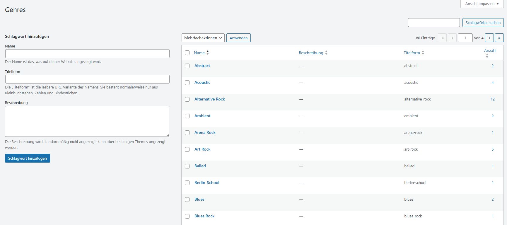 Genres und eigene Kategorien (Tags)